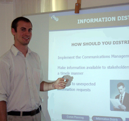 Sanmi has been an Economics teacher with an extensive background in Finance. Students benefitted from his experience and knowledge when he presented Project Cost Management to the group.